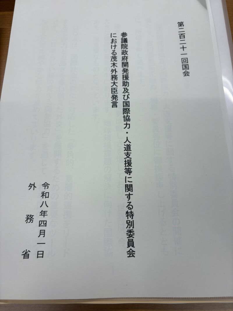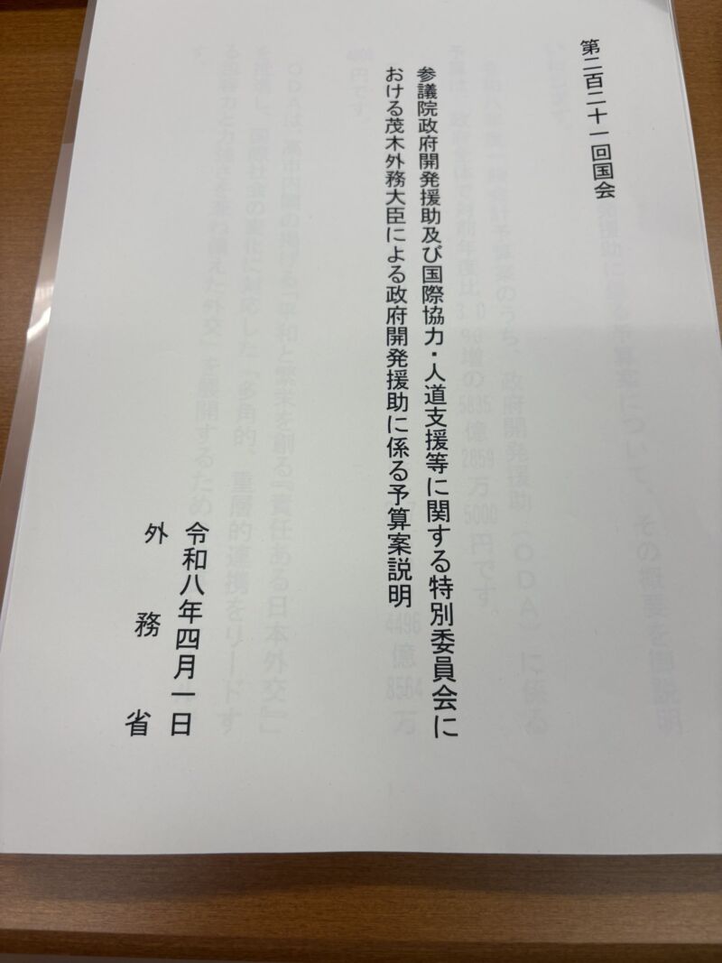 政府開発援助及び国際協力・人道支援等に関する特別委員会 委嘱審査並びに大臣所信表明